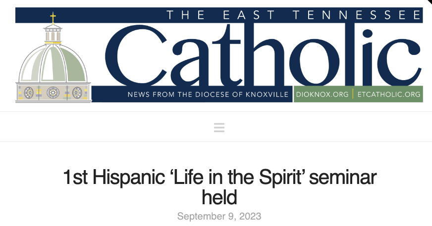 1st Hispanic ‘Life in the Spirit’ seminar held. Catholic Charismatic Renewal of the Diocese of Knoxville leads event at All Saints – Story in the East Tennessee Catholic magazine on September 9, 2023